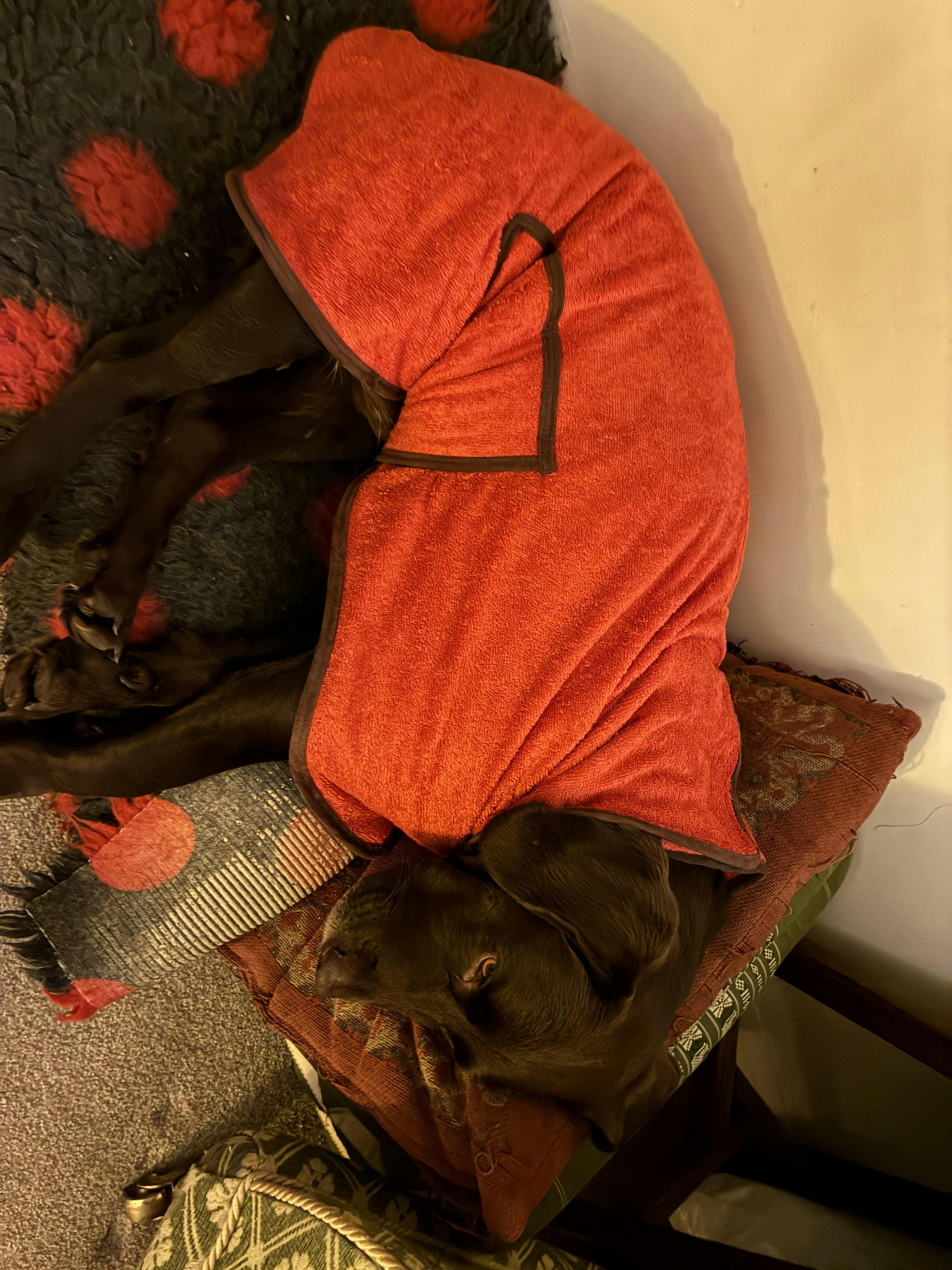 By far the best drying coat on the market, dries the dog really quickly and the coat with being bamboo dries quickly after it’s taken off the dog, both our labradors have these coats now and can’t recommend them enough if your thinking of buying one